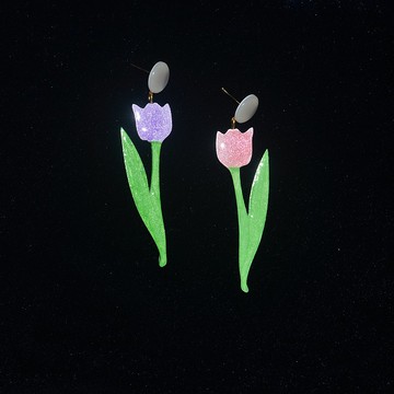 春天花會開 多色鬱金香花朵可愛耳環 手繪木製