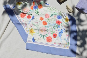 原創手繪復古真絲方巾花下眠