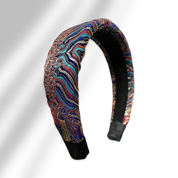 立體髮箍 湛藍錦浪 織錦緞 luxury brocade padded headband
