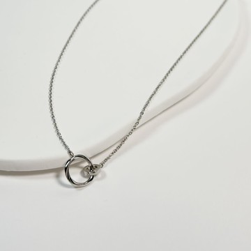 RJ New York 單鑽四葉草鏤空幾何雙圈鎖骨項鍊(銀色)
