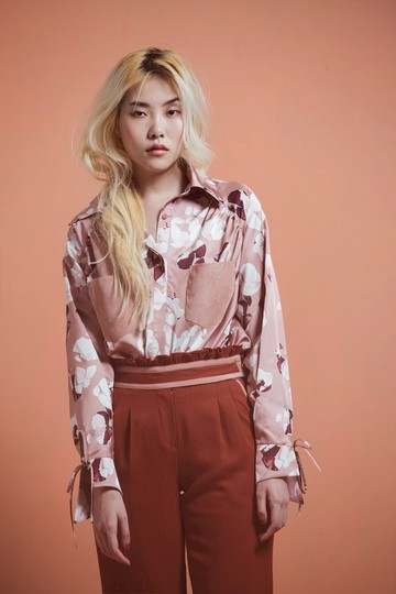 雲朵自訂款-挺版車線珍珠釦小拋袖襯衫-OB大尺碼