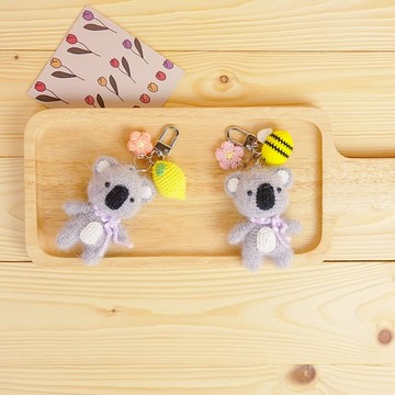 鉤針考拉鑰匙扣。手工禮物