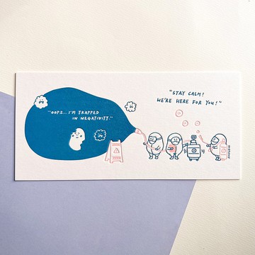 **〖小薯明信片〗 負能量拯救隊**給被負能量困住的小薯:"Oops... I'm trapped in negativity.""Stay calm! We're here for you!"**〖材質與尺寸〗**尺寸:19.5 cm x 9.5 cm紙質:棉卡 (600磅, 壓印)備註:背面空白**〖郵寄方式〗**付款後, 3 個工作天內寄出貨品。