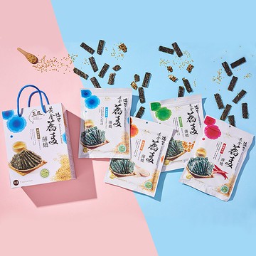 超人氣的海苔薄燒,酥脆爽口,一口氣可擁有4種口味禮盒內容物:原味x2+芝麻x2+杏仁x2+麻辣x1■ 綜合新口味!■ 蕎麥含有豐富的營養成分,讓您健康滿分!■ 採用台灣本產黃金蕎麥粒,讓您每口吃的到蕎麥口感!■ 搭配香醇新鮮海苔,加上醬油精心調配烘烤! ■ 讓您口口酥脆難忘,吃完乾淨不膩手!