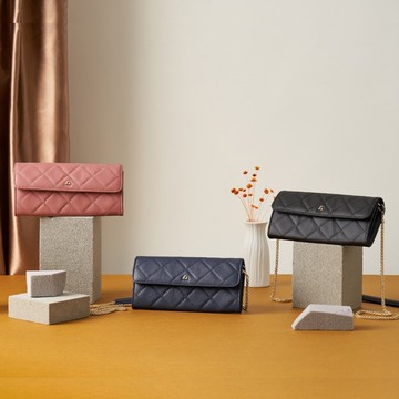PA-WOC真皮菱格鍊條手拿包-多色任選