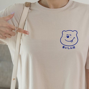 左胸 貪吃熊 男女短袖T恤 淺粉色 日文文青禮物幽默