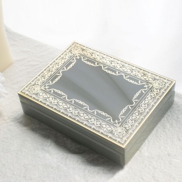 **不是裝貴,是裝有條理。****收進盒子,人生就不會亂七八糟。****古典藝術的綺麗世界,由玻璃延續,用金色記憶再次見證輝煌的歐式浪漫。****家的品味,無需重金裝潢;實用的居家裝飾,也能兼俱精緻細膩。放在家中****一隅,簡單營造藝廊般的高級質感。****收藏盒讓空間發揮最大的自由價值,收藏飾品之餘,還能收納各種物件;****絨布內裡防止碰撞,保護物品們不受損害。**│產品內容│不含內容物食品尺寸 : 長 300 x 寬 225 x 高 75mm (1入) 材質 : 玻璃 手工貼箔工藝包裝 : 單入包裝│清洗方式│請以海綿取用適當清潔劑手洗方式清洗,並使用柔軟布巾擦拭。│注意事項│◎玻璃盤為手工類產品。◎避免玻璃表面刮損,背面勿與尖銳或堅硬物品摩擦,主要為藝術裝飾用,可用於飾品收納。◎請物堆疊過多或重壓,避免刮痕磨損,敬請留意。