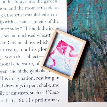 佩戴風景#20 放風箏 水彩 紙刺繡 迷你畫 別針 胸針