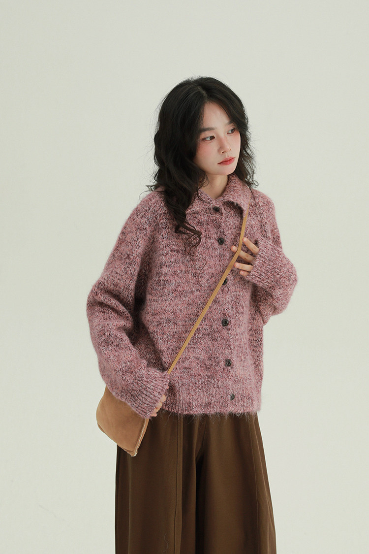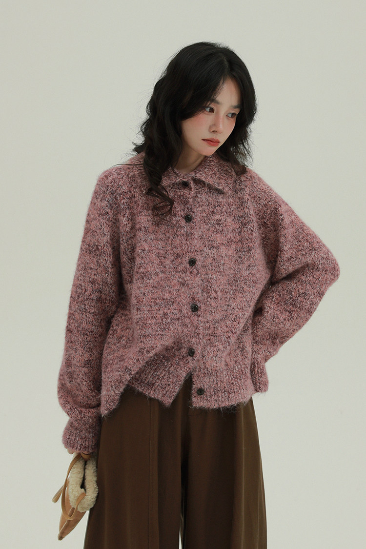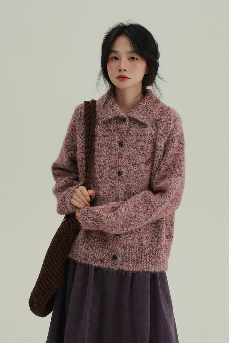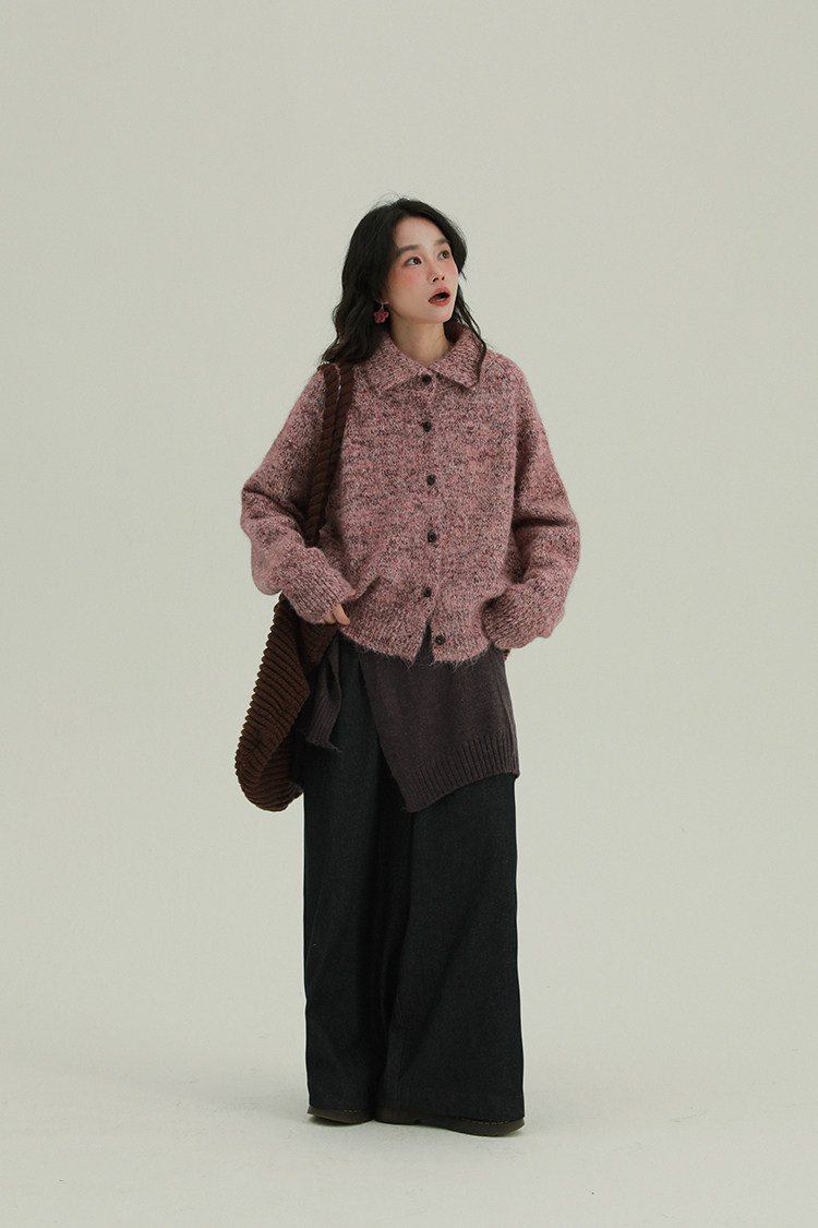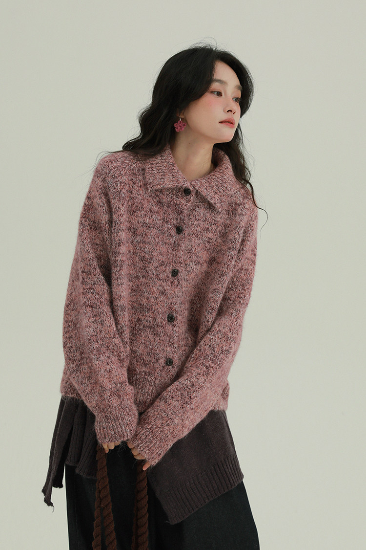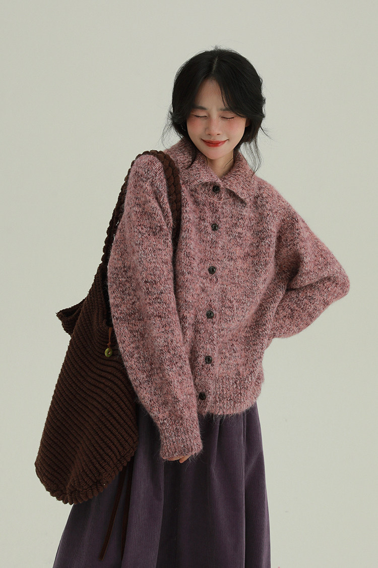 2顏色 雜色翻領柔軟針織毛衣 休閒百搭軟糯秋冬外套