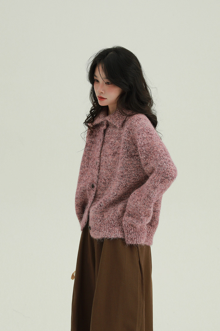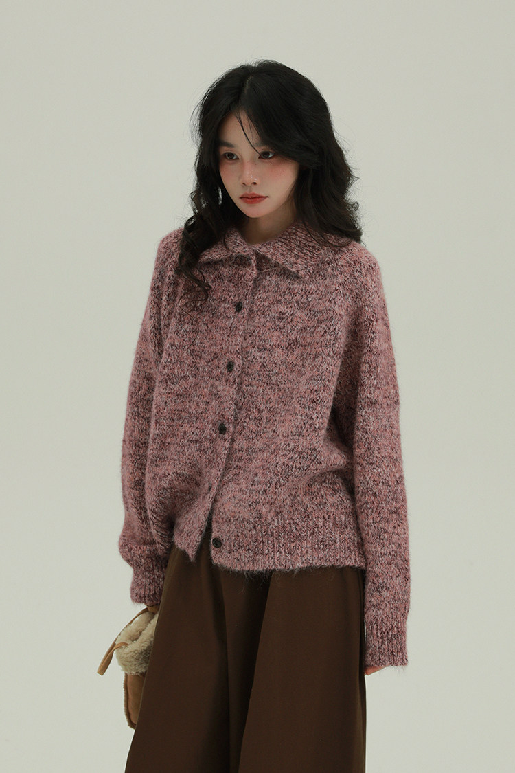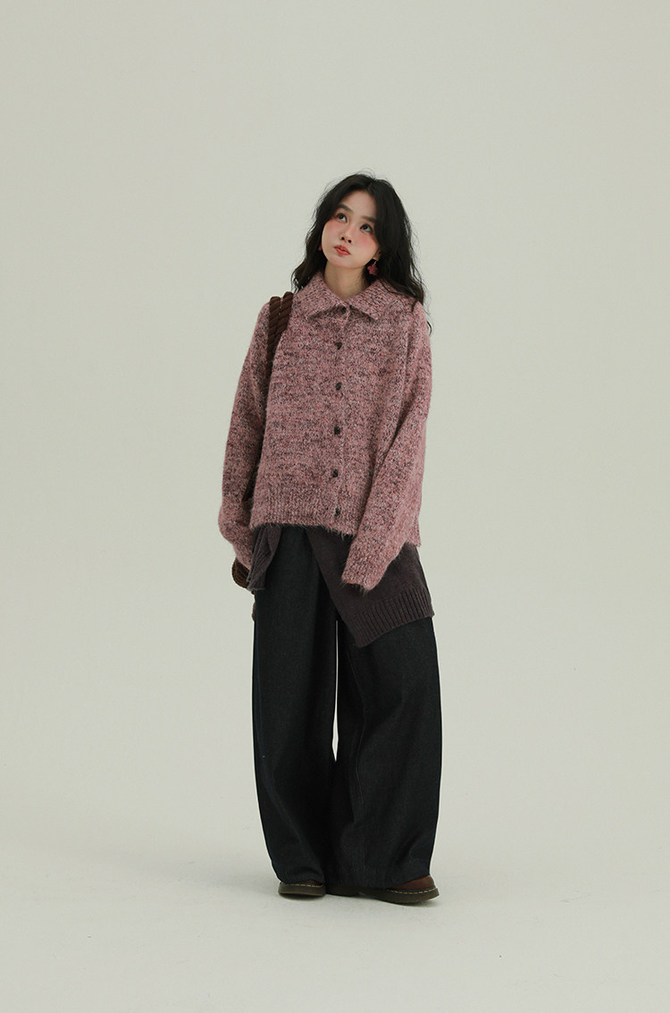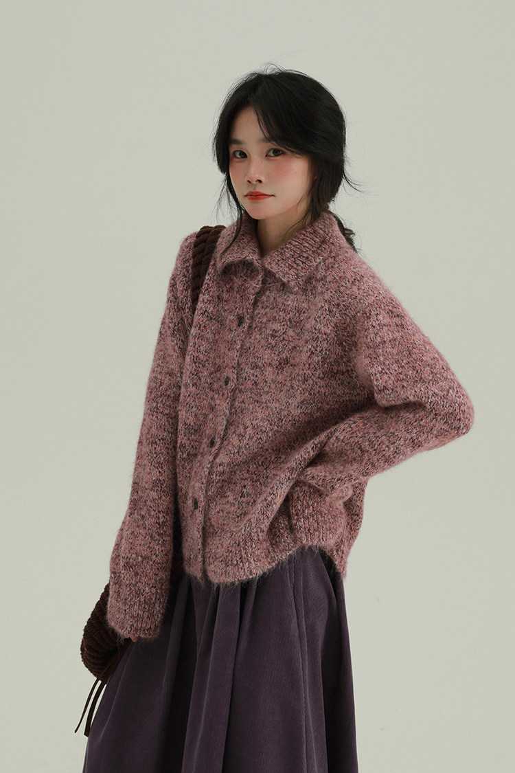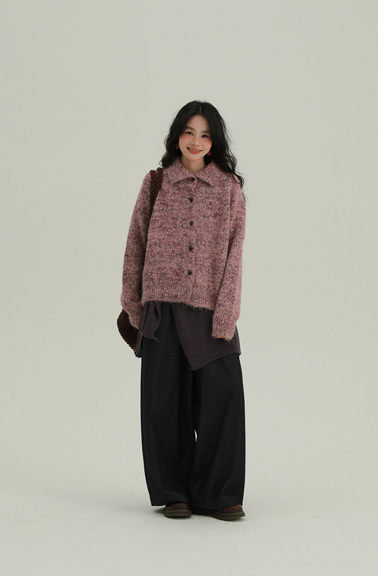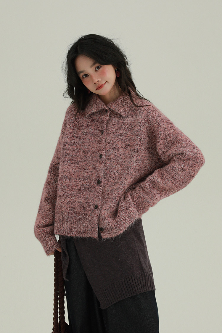 2顏色 雜色翻領柔軟針織毛衣 休閒百搭軟糯秋冬外套