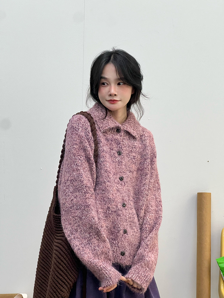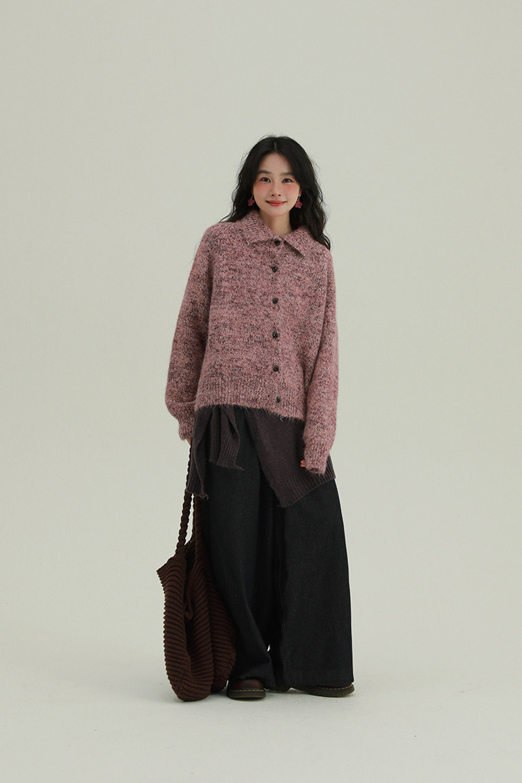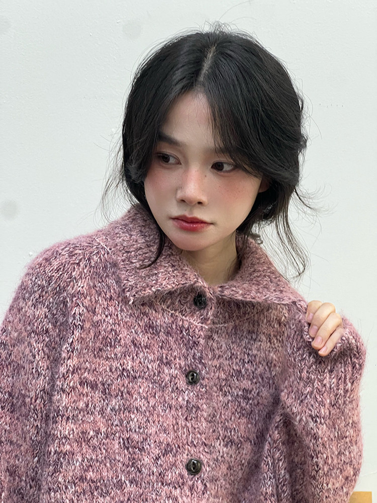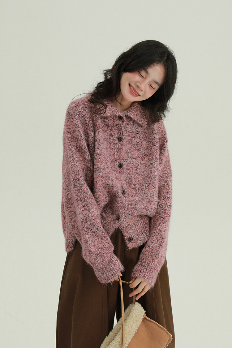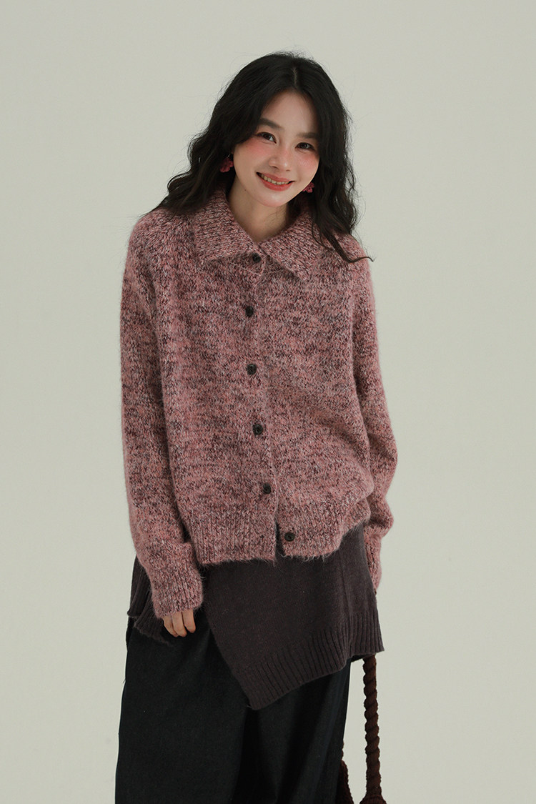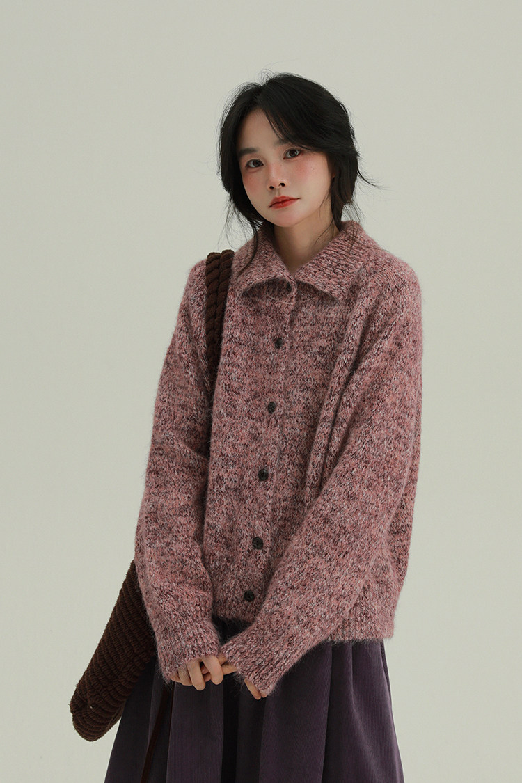 2顏色 雜色翻領柔軟針織毛衣 休閒百搭軟糯秋冬外套
