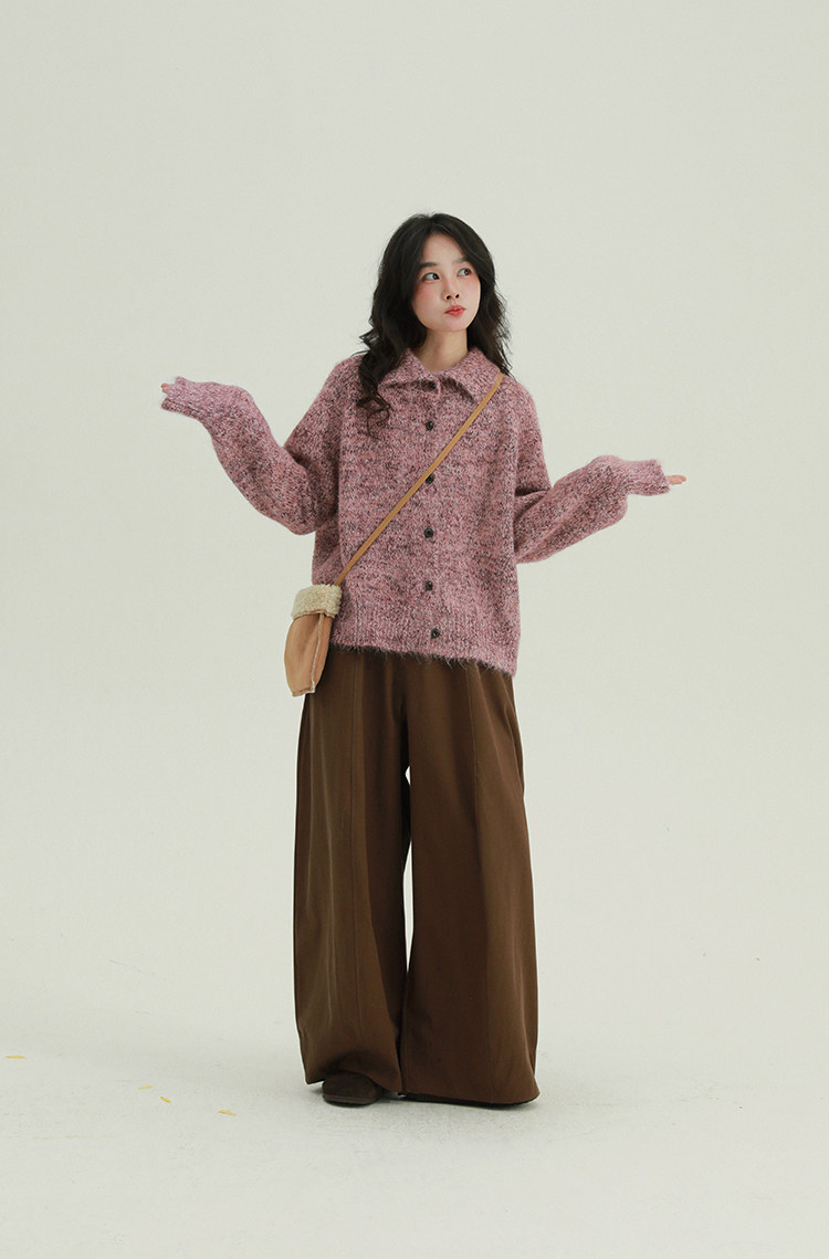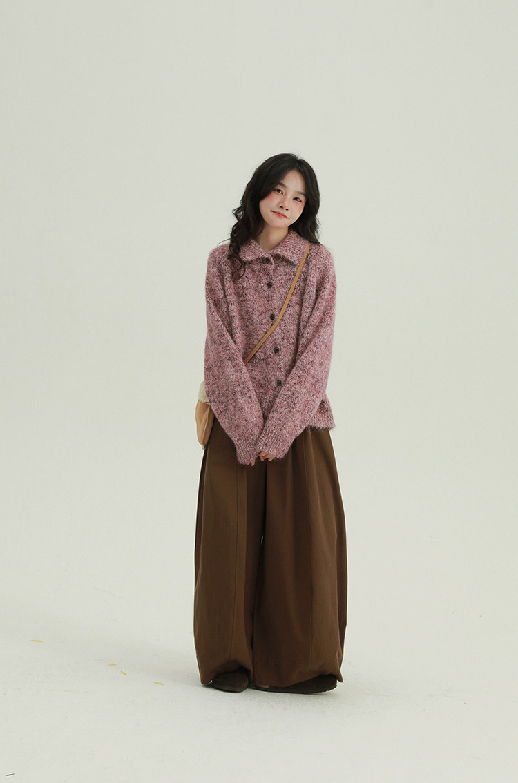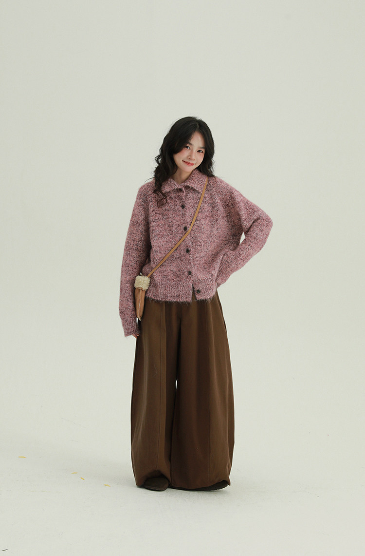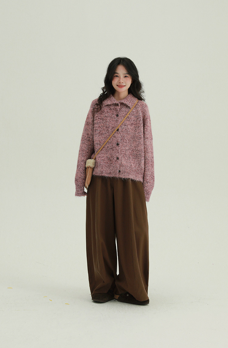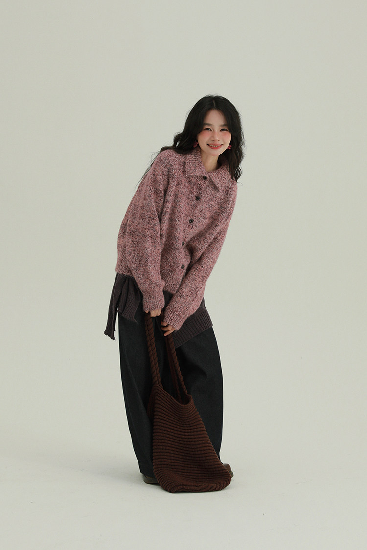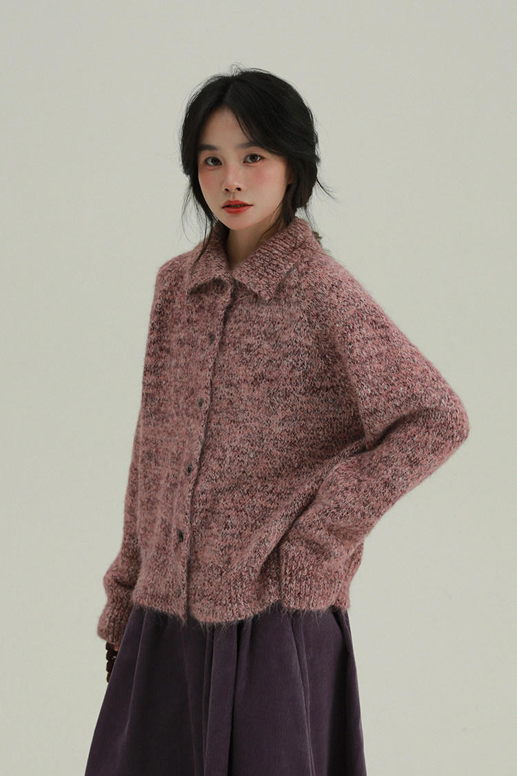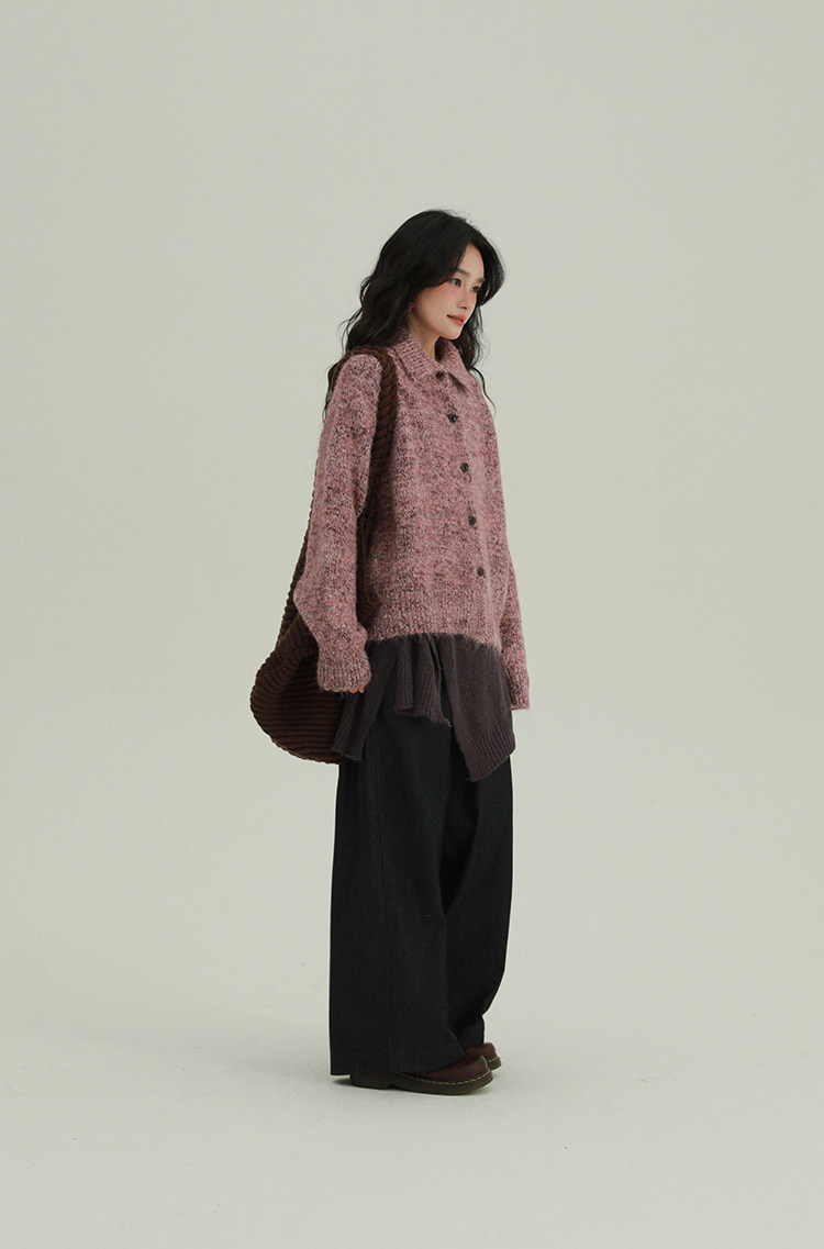 2顏色 雜色翻領柔軟針織毛衣 休閒百搭軟糯秋冬外套