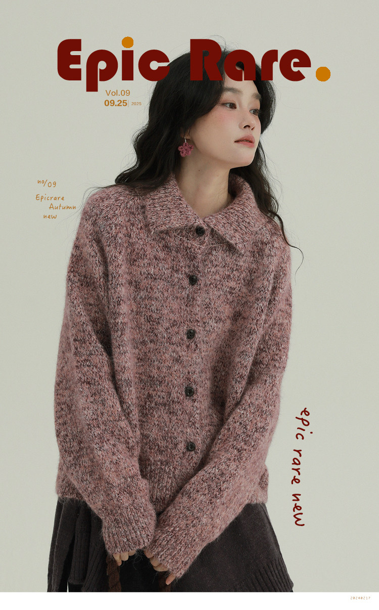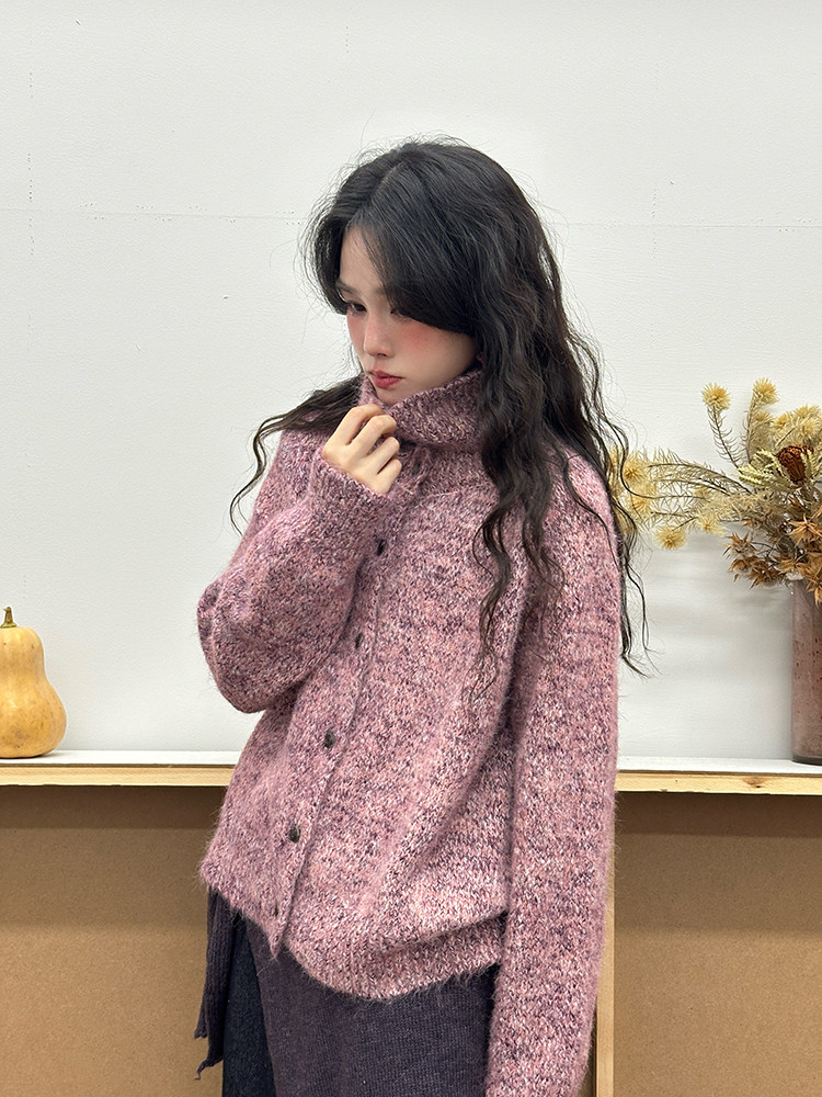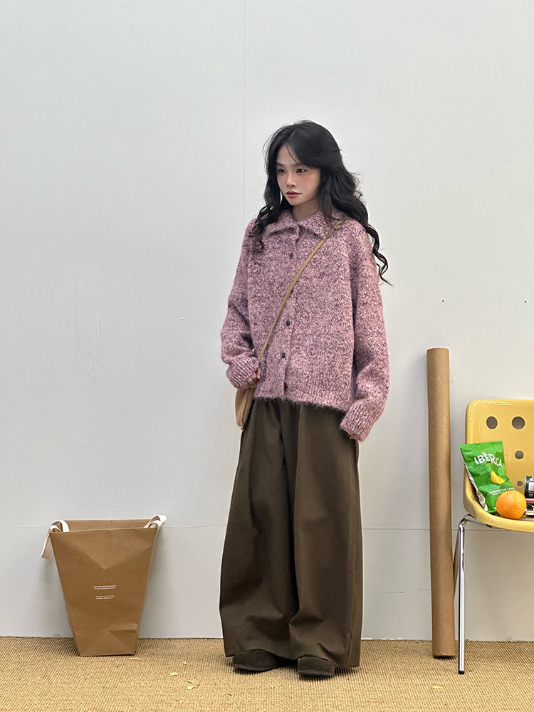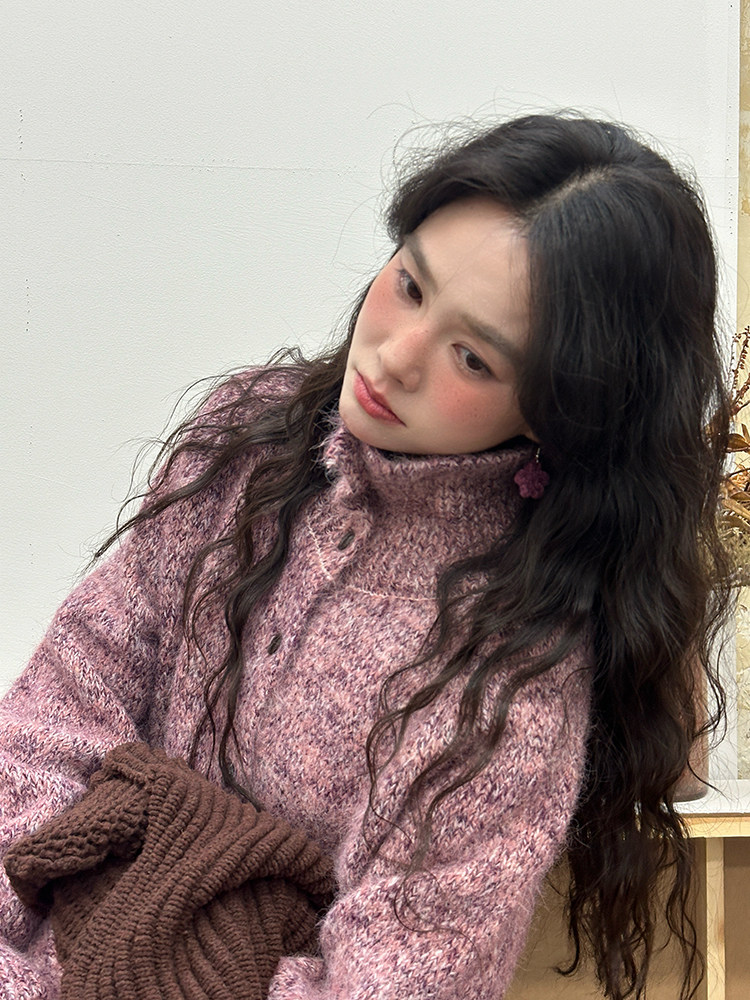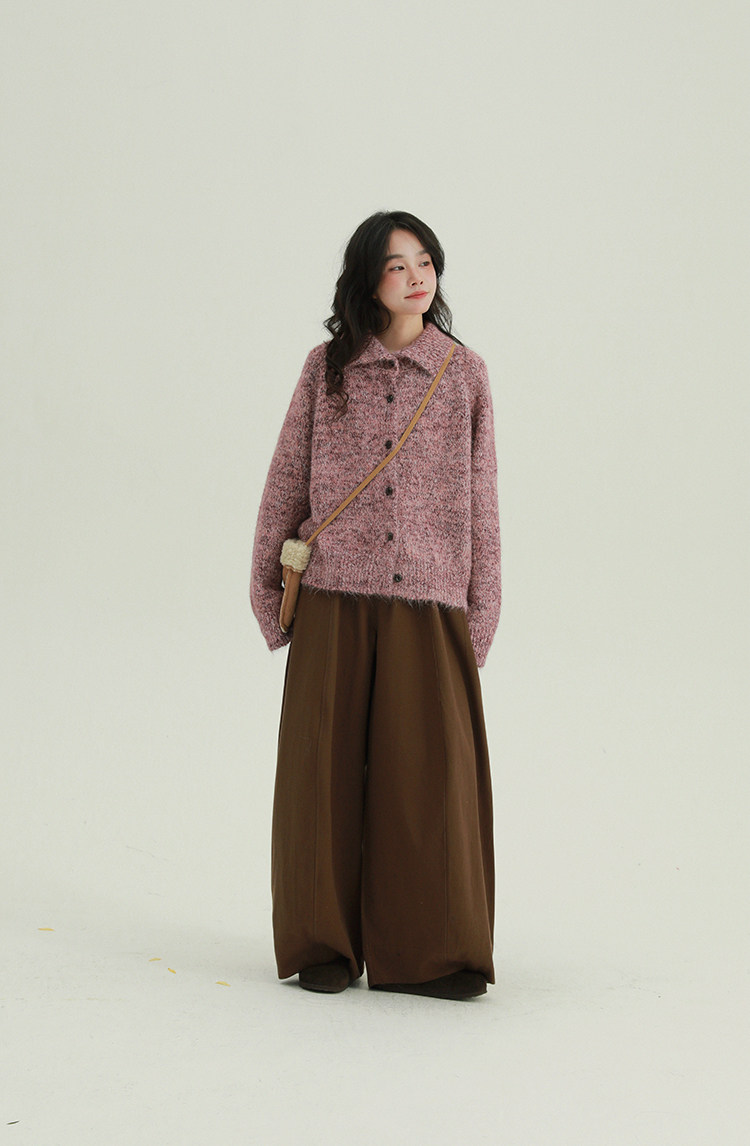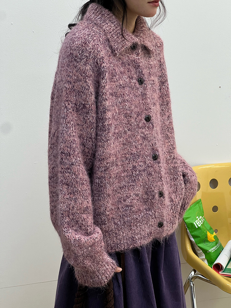 2顏色 雜色翻領柔軟針織毛衣 休閒百搭軟糯秋冬外套