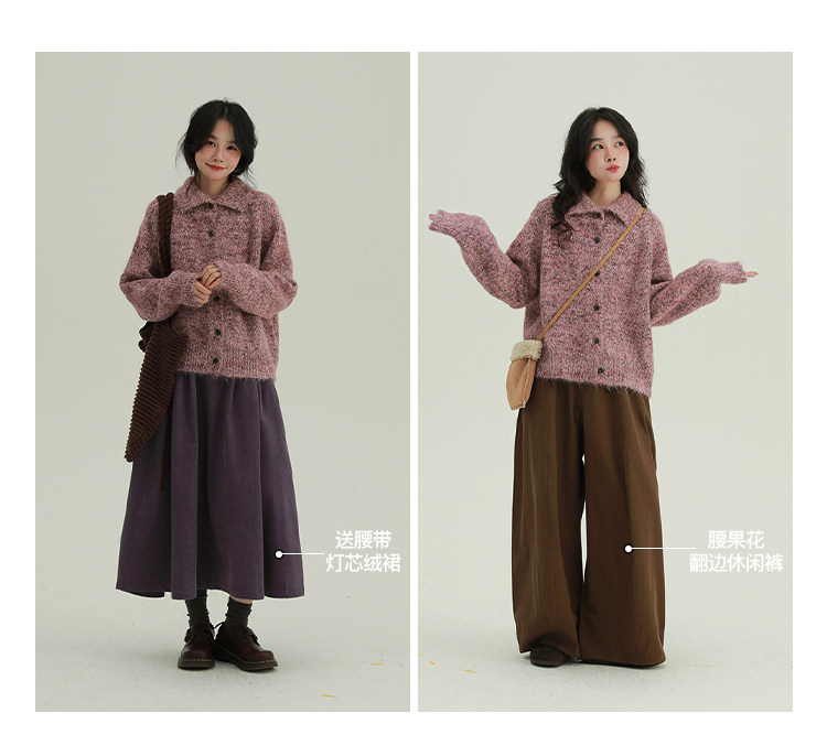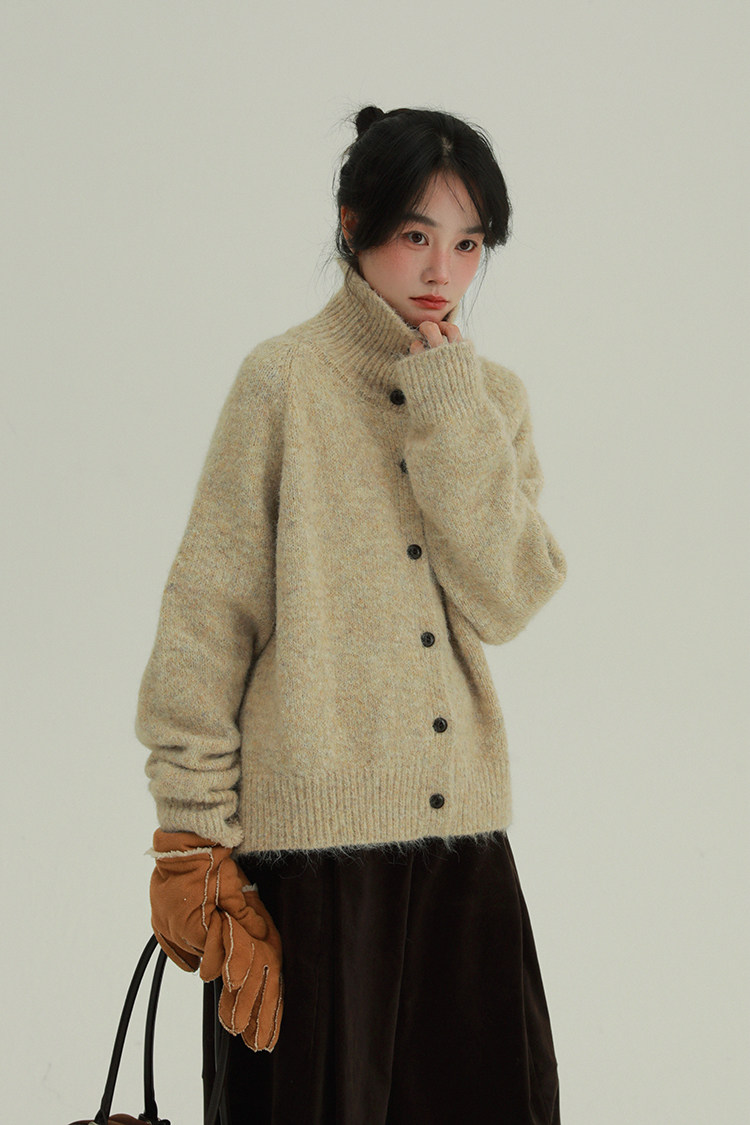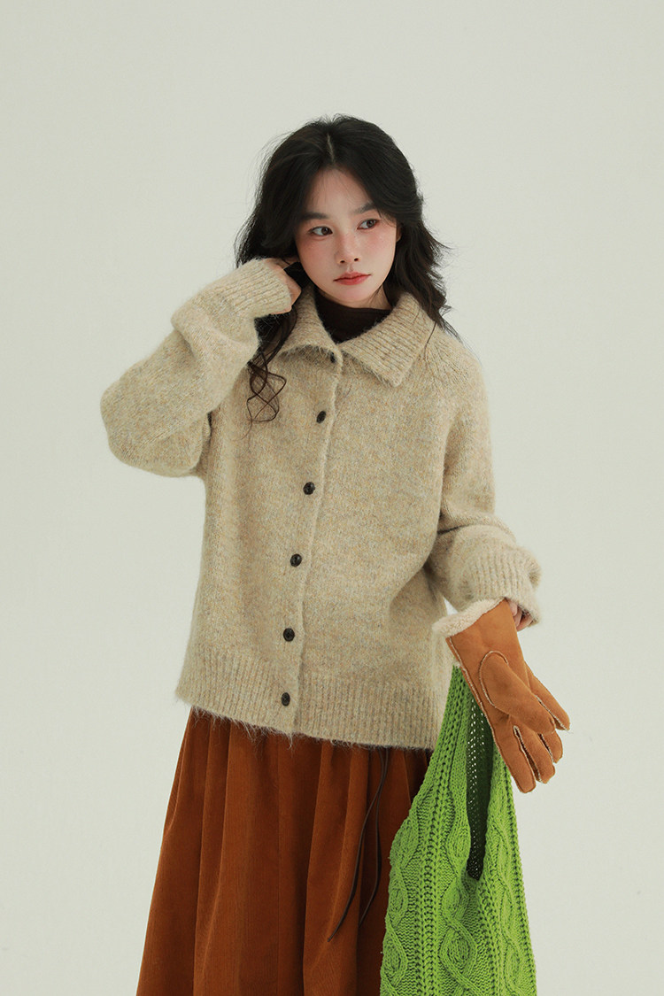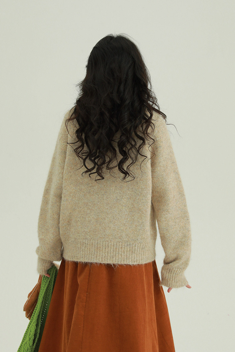 底色混著雜線,復古又柔和。寬鬆版型適合多數身材。針織面料軟,毛茸茸的,貼皮膚不扎人。冬天抗風,秋天單穿也透氣。隨便搭都好看。