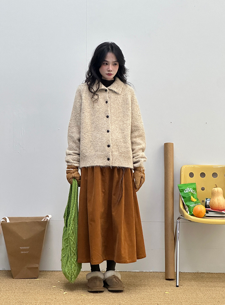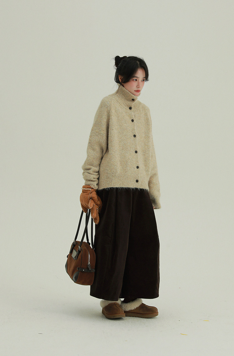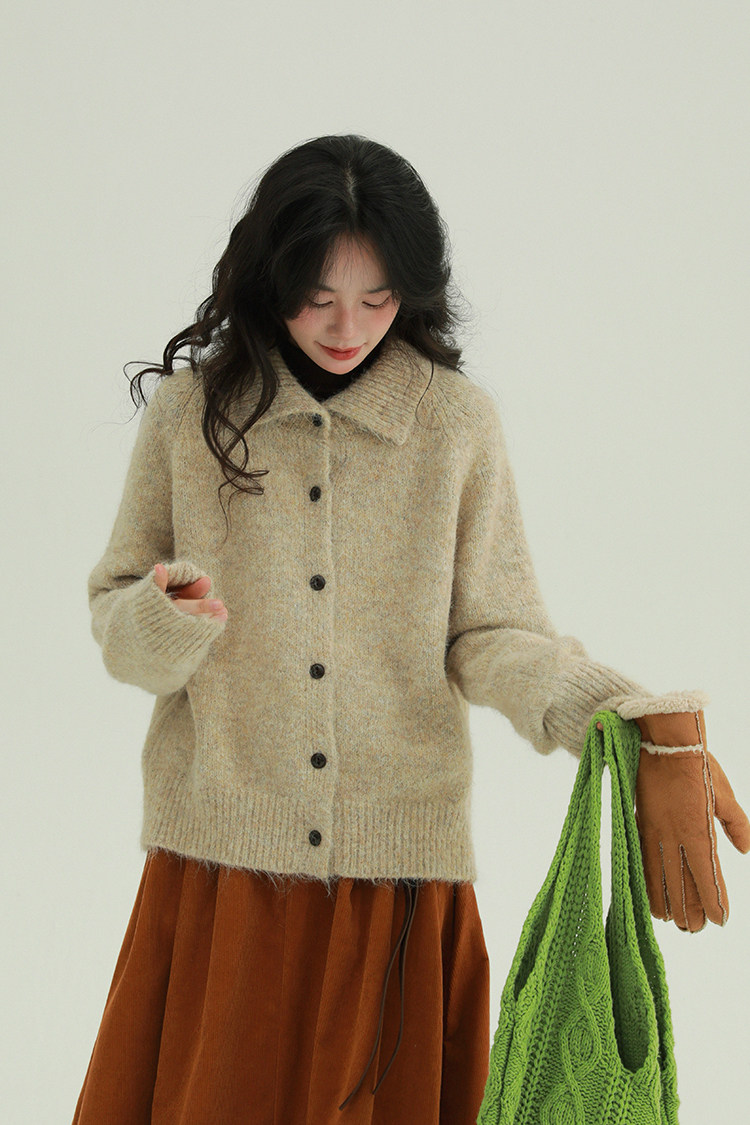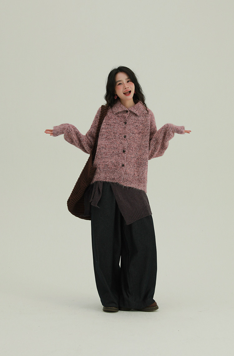 底色混著雜線,復古又柔和。寬鬆版型適合多數身材。針織面料軟,毛茸茸的,貼皮膚不扎人。冬天抗風,秋天單穿也透氣。隨便搭都好看。