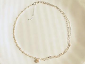 圓圓的荷包蛋 Œuf Miroir商品系列:Œuf Miroir Petite Luxe Collection🥚🥚🥚停擺的掛鐘 Horloge suspendue 心臟的跳動·如鐘擺一樣·不停的擺呀擺·見到你·卻漏了一拍🧁天然白色珍珠 2mm 3mm天然白色水滴型珍珠S925銀方鍊S925銀細鍊S925銀釦頭與延長鏈*全長約 41cm - 45cm(含延長鏈)*垂墜鍊長度約 9cm(含水滴型珍珠)Oeuf Miroir Petite Luxe Collection購買須知:❣️Bonjour monsieur dame ❣️為環保需求,商品不會提供過度包裝,若有送禮需求,請私訊我們,謝謝!建議洗澡、睡覺、泡溫泉等,需碰水場合,都拿下飾品,以延長飾品的‘生命’喲!。香水、化妝品、潮濕度、佩戴量,個人流汗量及體質都是影響其之氧化褪色因素!不過,褪色後會保有銅本身的顏色,別有一番風味!若為純銀或銀包真金的飾品,不會褪色喲!天然素材(礦石、珍珠、貝殼、玉、等等)每顆顏色、紋路、形狀不盡相同,並帶有大小紋理差異、冰裂、黑點、礦缺等自然細節,每個都是獨一無二的!短期沒有佩戴時,請使用軟布擦拭並放置在乾燥處,即可防止氧化。飾品一定要保養,生命才會更長久喔!照片會盡量呈現實物風貌,因拍照角度、光線、電腦顯色或個人觀感定義的不同,會有些微色差,天然素材也因每批材料會有些微差異,商品請依實品為主😘謝謝您喜歡我們 圓圓的荷包蛋 Œuf Miroir