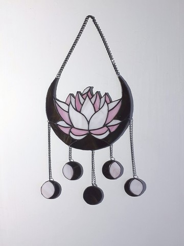 彩色玻璃月亮蓮花捕夢網月相花飾太陽捕手