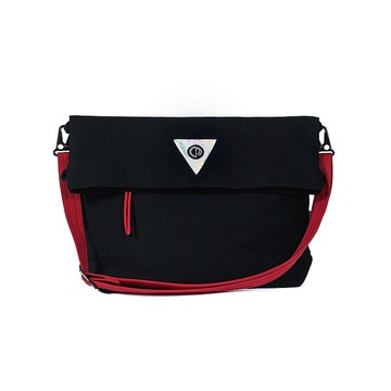 CINDERACHEL 2021FW日系帆布HANDMADE翻蓋郵差包 黑紅配色
