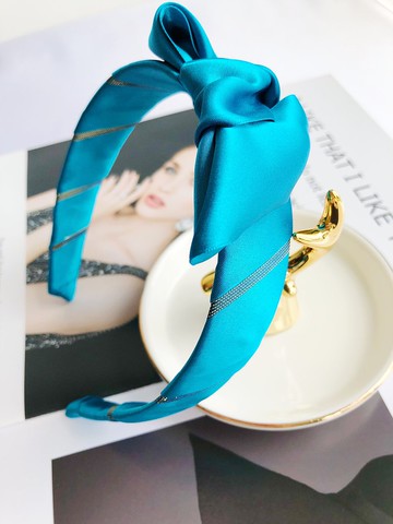 原創湖藍色頂部蝴蝶結髮箍