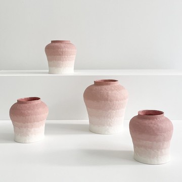 【品牌故事】這位藝術家在韓國的自然景觀中長大,深深被山脈的深邃所感動,並自然而然地被黏土的觸覺魅力所吸引。孩提時代,他常常凝視群山,陷入沉思,久而久之,這種與大地的連結使他沉浸在陶瓷藝術中。這趟旅程成為他藝術世界的根本基礎。他的標誌性作品“山水畫系列”捕捉了黎明時分霧濛濛的山脊,透過單色陶瓷作品表現出來。這些作品將傳統形式與「他自己的時代」的層次融合在一起,創造出獨特的視覺敘事。雖然他主要採用單色和天然的黏土色調,但偶爾也會加入粉紅色和綠色等清新色彩,以反映大自然的多樣化面貌。[描述]藝術家以粉紅色調創作了原創風景畫系列,使其適合用作花瓶,尺寸合適,內層塗有釉面。[細節]-尺寸:170x170x170mm-重量:200公克-組件:1個-材質:陶瓷-韓國製造