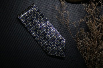 深藍色復古宮廷老花真絲領帶大氣百搭necktie