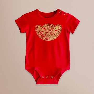 臺灣製 純棉 包屁衣 嬰兒服 / 短袖 / 富貴如意 燙金元寶款 MIT