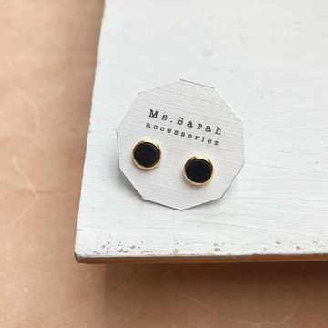 節日禮物 圓點配色皮革耳環 純銀耳針