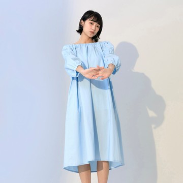 一字領泡袖洋裝