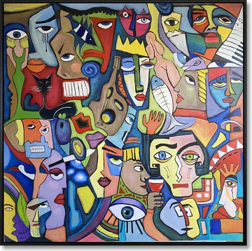抽象立體主義面部藝術大型鮮豔色彩繪畫原創現代藝術