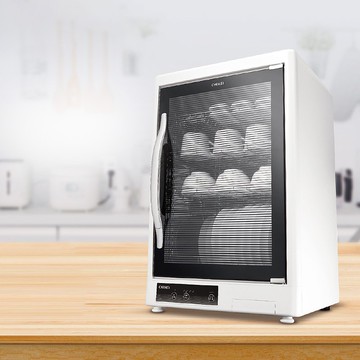 https://live.staticflickr.com/65535/51875164690_aec3cc3937_o.jpghttps://live.staticflickr.com/65535/52388065419_ce0f978017_o.jpg商品特色◆消毒、烘乾、儲存一機滿足,UV紫外線殺菌、高溫熱風烘乾、奈米光觸媒除臭三道流程,為家中食安把關。◆適用廚房消毒(杯/盤/碗/筷)、嬰兒用品消毒(奶瓶玩具)、衣物消毒(口罩/毛巾/衣褲)等多種用途。◆採用波長254nmUV紫外線燈管,強力殺菌、除蹣、消毒;殺菌、烘乾可獨立操作!◆85L大容量,可調式層架魔術大空間,一機滿足多種用品消毒。◆全不鏽鋼內腔與層架,SGS認證健康無毒材質。◆微電腦4段定時功能(20/40/60/80分鐘),操作直覺簡易,貼心前次使用記憶裝置使用更便利。◆LED燈照明,開門亮燈好貼心,可清楚辨識深處碗盤,拿取更便利。◆防蟑矽膠條設計,可大部分密封機體,減少隙縫,衛生安全好放心。◆高溫烘乾搭配集水盤,碗盤免瀝水、免擦乾,水盤集中安全衛生!◆防爆強化玻璃門,安全防爆,有效隔離紫外線。◆啟動中開門,紫外線燈自動熄滅,以防外洩。◆啟動中開門,10秒後將有警示音鳴叫提示關門。◆安全散熱,安全溫控裝置,防機體溫度過高散熱。◆MIT台灣製造,品質有保障。商品規格◆型號:KD-85FBL0◆產品形式:桌上型免安裝◆產品尺寸:長470 x 寬390 x 高708 (mm)◆產品淨重:13.5Kg◆額定電壓:110V◆額定頻率:60Hz◆額定消耗功率:250W◆容量:85L◆殺菌燈規格:T8 10W 254nm◆啟動器規格:FS-1P或FS-7P 110W◆層架附件:筷架、碟架、碗架、盤架◆產地:台灣◆商檢字號:R41148◆國際條碼:4713170844348◆保固:正常使用下全機一年保固