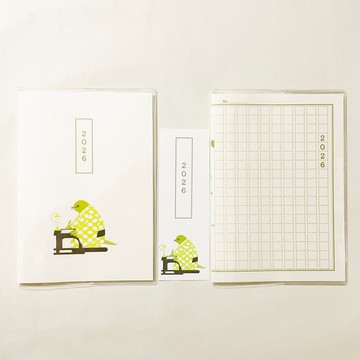 2026年 文豪目白稿紙 手帳 日誌。『文豪目白』與『稿紙』插畫封面2張、塑膠書套1張、書籤1枚、手帳1本組合。(※圖片1為拍攝使用2張塑膠書套、2本手帳)作家目白使用的稿紙設計。可透過2張插畫封面更換封面設計。【手帳內容】・2026年~2027年行事曆2頁・2026年年度計畫2頁・2025年10月~2027年1月月間計畫・備忘錄6頁・健康檢查表、贈禮記錄、個人資料等・全48頁手帳尺寸B6約128×181mm封面插畫尺寸260×185mm手帳本體:紙插畫封面:牛皮紙塑膠書套:聚氯乙烯書籤尺寸約50×148mm※更換插畫封面時請勿過度用力,請溫柔對待。※恕不接受因使用中遺失、破損等理由之退貨,敬請見諒。☆2026年各式手帳日誌熱賣中。・黑三春駒・白八幡馬・埴輪馬・風神雷神貓又・狐火手毬歌・黑九尾狐火・黑狛狐與稻穗・狐狸嫁女・御札狐・旭日狛狐・破魔矢 ama-bi-e・三花貓的獅子舞遊戲・投扇興天狐・搗麻糬兔・紅色不倒翁・藍色不倒翁・招福貓・皇帝企鵝・紅風鈴狐・藍風鈴狐・夜間讀書會 金剛星・夜間讀書會 糖花星紺箒星・夜間讀書會 羽根星・文豪狐 稿紙・文豪貓 稿紙・文豪兔 稿紙・文豪熊 稿紙・文豪雀 稿紙・文豪目白 稿紙・文豪鶴 稿紙・文豪狸 稿紙