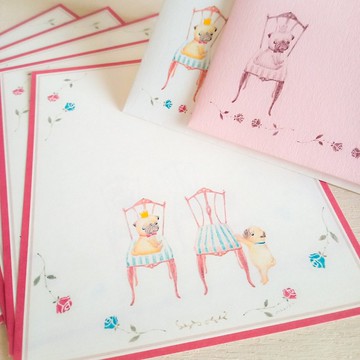 古董椅與充滿王者氣息的巴哥犬插畫。印有玫瑰花紋與紅色邊框點綴散發著懷舊氛圍小巧尺寸的迷你信箋。非常適合用於傳達心意!【內容物】信箋5張/信封2個【尺寸】信箋:91×110mm/信封:65×100mm◆關於信封大小可放入名片,有粉色與白色兩種顏色。每一個信封皆為手工製作。