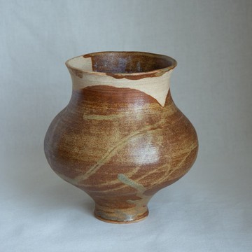 喜歡製作圓弧造型的花器,自製調配的化妝土與草木灰釉,天然材料的豐富性經過燒製後顯化,流動的釉色黃、咖啡還帶點藍?局部未施釉的地方,像拼貼與繪畫般呈現於此容器。size: Ø 10.5 w15 h15.5 cm陶器為手工製作,實際顏色與尺寸以實品為主,如有釉縮、流釉、冰裂紋等,皆為作品獨一無二的表情。・花器使用完請洗淨晾乾,種植物的盆器,長時間盛裝土壤及澆水後,如有變色皆為正常,隨著使用產生的變化皆為陶器特點。・器物底部多為未上釉,清洗完建議倒置通風處晾乾,待完全乾燥後再收納。