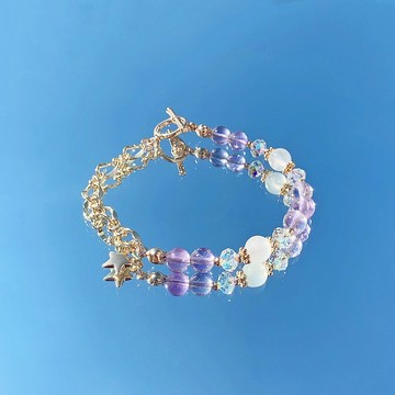 【材質說明】-紫水晶 約 6.5 mm-藍月光 約 6.5 mm-Swarovski 切割面奧地利水晶-14包金鍊飾【圖中】手圍尺寸:約 15 cm ( 其他尺寸可聯絡我們訂製 )* 手鍊整體設計會因尺碼不同而有所改變/珠子增多/減少。【 手圍尺寸 | Size 】請用軟尺在手腕最細處,不鬆不緊地貼著手腕繞一圈,量度得出您手腕的圍度,無需自己預留空間。____________________________【天然水晶靈性功效】紫水晶|Lavender Amethyst功效:*有助增強人緣、促進人際關係*有助開發智慧,加強記憶力與注意力*可消除霸氣,帶來貴氣,加強包容心*讓潛藏的智慧之光展現,不受世俗和愚昧的思想所困惑月光石|Moonstone功效:*可平伏煩燥的心情*有助吸引異性* 可以促進情侶之間的和諧* 有助提升女性魅力及柔美本質* 安眠 (月光石溫柔穩定的磁場,能夠平緩焦慮的心態)* 加強個人的第六感及開發靈性* 舒緩經前症候群,幫助安胎、助孕 【包裝】*禮物盒*消磁石*後備線(只限彈力線手鍊款)*抹銀布(只限925純銀手鍊款)https://live.staticflickr.com/65535/51179418897_f2966e0884_b.jpg【淨化方法】共振消磁法將水晶飾品放在我們附送的消磁石或者晶族/晶洞上,讓消磁石或者晶簇/晶洞發出的振動能量清除水晶負面記憶及重新充電,建議放置4小時以上就可以完成淨化消磁使其能量完全補充。薰香淨化法需香淨化法聖木/鼠尾草/雪松等,都是具有強力淨化效果的自然物。聖木及白色鼠尾草,燃燒後的煙有淨化效果,可以在水晶周圍畫圈,可達至淨化水晶的作用也可以順帶淨化人體以及身處的空間。月亮淨化法把水晶放到一個月亮能照射到的位置,接受月光照射一晚的時間即可。月光除了能幫水晶消磁之外,還能加強水晶能量。*去醫院,墓地這些地方時盡量不要戴水晶,這些地方的負能量比較多。可將之除下放入衣袋。因為水晶會吸收四周的能量,尤其是白水晶較易受污染,所以從這些地方回來儘量做一次淨化,消磁。【水晶注意事項】不要戴着睡因為有的水晶有吸納負性的能量,保護主人的能力,日間吸納了負性能量,它需要時間恢復元氣,應該將它安放在晶族,消磁石,晶洞中,好好的休息,如果家裏沒有,就把它放在一個安靜的地方,有陽台的就放在陽台上,讓它大自然來一個親密的接觸,也可達到淨化的目的。人在酣睡的時候,進入潛意識活動狀態,感覺的敏銳性相對會提高,這個時候,水晶石的能量可能變得強大異常,導致辭神經系統有過急的反映,這樣對身體不利。不要讓別人亂摸一般的情況下最好不要讓別人亂摸你的水晶,水晶是物以類聚,(例如)如果想求事業,所戴綠幽靈被一個成功生意人動過,因水晶有記憶體,會記錄對方好能量,這樣反而有助運勢。相反的,水晶一旦被一些運滞的人動過,就要盡快淨化。水晶是有靈氣的東西,好運的人摸了可能會給你帶來好運,可是要是有霉運的人摸到可能就會帶來霉運,所以,自己佩戴的水晶儘量不要讓別人觸摸比較好。【日常保養】1.避免接觸水空氣中的水氣以及皮膚表層汗水容易對飾品造成侵蝕作用,應盡量避免接觸水,建議洗澡、泡溫泉、游泳等時候取下飾品。2.避免接觸化學添加物品應避免接觸酒精、香水、護膚霜及化妝品等含有化學添加物的產品,此類產品會加速飾品氧化速度及損耗金屬表面。3.切勿用力拉扯佩戴飾品或取下飾品時,切勿大力拉扯以及反覆屈折飾品,以免產生磨損、斷裂、變形等情況發生。4.應保持清潔若長時間不佩戴或佩戴飾品過後,建議使用乾燥的軟布擦拭表面以免汗水停留飾品上造成侵蝕。【購買須知】1.本店貨品均為手工製產品,製作需時請耐心等待,手作不容易請愛惜佩戴及細心保存,少數商品有機會存在因手作原因無法避免的微細瑕疵,還望見諒。2.天然水晶為自然產物晶體及成色不可能完全一樣,偶然出現冰裂、棉絮、凹洞、微細大小不一、微細的雜質等屬正常現象,製作前會優先篩選品相好的製作,如未能接受切勿下單,客人均不能逐粒挑選。3.所有貨品圖片均為店主自行拍攝的實物圖,店主在拍攝上會以自然陽光盡量呈現實物樣子,但由於拍攝設備、光線、螢幕設備等因素 有機會導致相片與實物存在輕微偏差,一切以實物為準。4.由於每位客人手圍都有所不同,店主會因應你們的手圍作出微細調整,下單前先自行確認手圍以及通知店主或備註。如未有通知或備註手圍則被視為預設手圍,本店均不承擔其責任。(預設手圍可見於產品描述欄)5.若於佩戴過程中有破損,可聯絡店主,客人可以將產品寄給店主進行維修處理,1年內保修期內免費維修保養,如若需要更換新的零件將酌量收取費用。(來回運費需由客人自行負擔)6.如有任何爭議,Paradise_ Studio.Hk將保留最終決定權 【物流須知】「香港、澳門、台灣」使用順豐寄出,寄出後可於訂單狀態查閱運單號碼香港地區: 寄出後預計運送時間2-3天。(香港客人可以提供住鄰近順豐服務站、順豐智能櫃或者住宅地址)澳門地區: 寄出後預計運送時間3-5天(如遇上海關清關檢查則需更長時間)台灣地區: 寄出後預計運送時間5-7天(如遇上海關清關檢查則需更長時間)注意事項: 請確保填寫正確資料,如若因為填錯誤資料等人為因素而導致無法送達,我們將不會退款或者免費補發。
