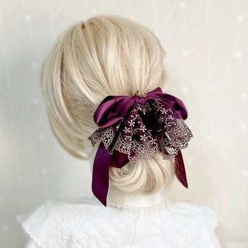 法式復古蕾絲紫香蕉夾 彈簧夾 髮叉 髮圈 大腸圈髮夾抓夾 鯊魚夾