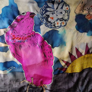 一條令人驚豔的手繪絲巾,描繪了兩隻精美的鳥兒,翩翩起舞,象徵著愛的奇妙。抽象的設計捕捉了浪漫的精髓,背景是風格化的山脈,喚起了一種寧靜與冒險的氛圍。這條奢華的絲巾尺寸為90 x 180厘米,採用純絲精製而成,並採用高品質的法國絲綢染料進行染色。色彩經過專業的蒸氣定色,確保經久耐用,依然鮮豔飽滿。這款絲巾是欣賞非傳統設計的藝術女性的理想之選,也是體現優雅與創意的貼心禮物。♥ 僅限冷水手洗。♥ 適合森林婚禮♥ 適合送給婆婆♥ 適合鳥類愛好者♥ 適合插畫愛好者♥ 適合喜歡鮮豔色彩的人♥ 適合音樂愛好者♥ 適合欣賞獨特設計的鑑賞家♥ 圍巾為訂製款,