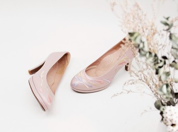 刺繡高跟手工婚鞋- 與子偕老/淡粉