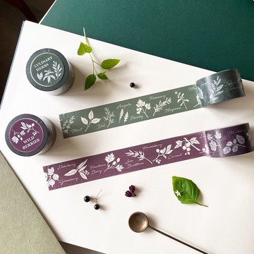 【漫步植物園 / 草木花果紙膠帶 2.5cm x 5m】剪影插畫風格,呈現料理中常見的香草植物,以及山林中常見的野生莓果。不論是用來裝飾、標記手帳本或是妝點卡片、食品、禮品包裝,簡約素雅的美感能為日常生活增添植感氛圍。香草植物 Culinary Herbs - 餐桌料理的迷人氣味;薄荷、迷迭香、月桂葉、馬約蘭...野生莓果 Wild Berries - 森林野外的酸甜果實;接骨木莓、越橘、醋栗、山楂果...* 尺寸: 寬2.5cm x 長5m (循環單位23cm)* 圖樣: 香草植物、野生莓果系列* 底色: 松綠、葡萄紫 (可能因拍攝光源、色溫或螢幕設定而產生色差,請以實品為準)* 材質: 日本和紙* 備註: 販售商品為紙膠帶,不含其他拍攝道具日常包裝應用:https://www.youtube.com/watch?v=MkM0RyGYtFw