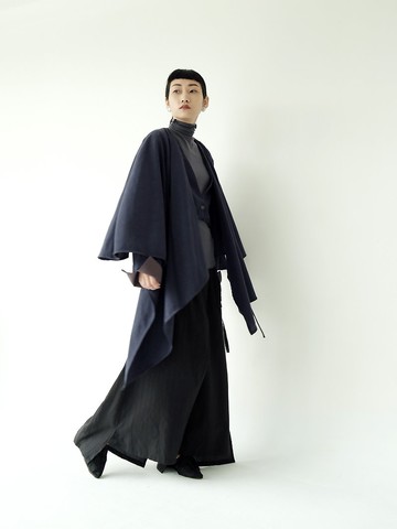 是一件俐落的單釦短版西裝外套,也能是遊牧的披風。可拆式的披風有著多種穿法,體現了隱仕也能並存於城市的精神。袖子內層拼接了印度的蠶絲格紋布料細細的交織著光澤。-Material : 本體_棉混麻Cotton 袖口_SilkSize : Free size 肩寬40cm 胸寬43cm\t衣長短43.長112 袖長63Model : 160cm/42kg