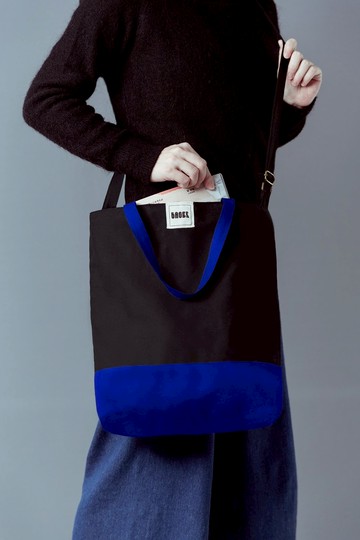 簡約拼色 可調式背帶三用帆布包 肩背 手提 斜背 黑+寶藍