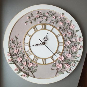 櫻花嬰兒房掛鐘 採用白色與灰色調,點綴 3D 粉色櫻花。錶盤塗有金色顏料。櫻花枝幹與指針也帶有淡淡的金色光澤。可依要求製作阿拉伯數字錶盤。時鐘由夾板製成,並以壓克力顏料上色。櫻花則以裝飾黏土,運用調色刀的立體繪畫技法製作而成。尺寸12吋 (30公分)14吋 (35公分)16吋 (40公分)18吋 (45公分)20吋 (50公分)時鐘配備靜音機芯,秒針運行平穩(無滴答聲)。這是臥室和兒童房的絕佳選擇。這類設計獨特的時鐘,能成為送給家人朋友的特別禮物。時鐘已準備好懸掛。**產品特色**材質:木材、壓克力顏料、裝飾黏土、石英機芯、2個金屬掛鉤。保養提示:- 請勿水洗- 可用吹風機或軟毛刷吹去灰塵**如果您喜歡這款時鐘,但顏色或尺寸不適合您的居家風格,歡迎與我聯繫訂製。我很樂意為您創作獨一無二的作品。**若有任何問題,請隨時寫信給我。時鐘的顏色可能與照片中的顏色略有差異。這是由於您的顯示器設定所致。請注意,買家需自行負責您所在國家海關可能徵收的任何關稅和進口稅。**感謝您參觀我的商店!**