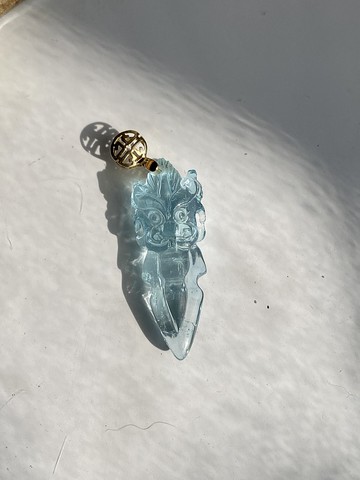 **[材質]**海藍寶主石直徑約26*9mm吊墜為18k金,贈黑皮繩__其他保養及注意事項__飾品佩戴方式:盡量在衣服穿帶好之後再佩戴飾品,以免心愛的飾品勾到心愛的衣服,反之亦然。另外不要在飾品上面噴灑香水或者塗抹乳液,可以讓心愛的飾品免於遭受酸鹼破壞每件礦石具天然色澤與折光,獨特紋理礦口並非瑕疵,請您細細品鑒,並且確認細節,如果對於產品細部有任何疑問請洽設計師建議定期消磁,例如靜置於天然海鹽上__關於波卡圓點與小月光__風格沒有定義,打破框架,以不同的方式表達自己的每一天吧!波卡圓點與小月光(Polka Dots and Moonbeam)創造獨一無二的水晶和礦石飾品,如同色彩繽紛活潑的波卡圓點、皓皓生輝的白色月光,帶給顧客愉悅感受和來自大地的礦石能量。 品牌創立者Wen擁有多年收藏礦石和品鑑經驗,精挑優質寶石來源,並以色彩學、脈輪能量為基礎,使用美麗澄澈、色彩繽紛的原石,手工製作別具一格的手環、項鍊飾品,讓配戴者由內而外散發耀眼光芒。