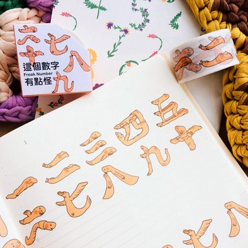「這個數字有點怪」紙膠帶,是一群奇怪生物組成的國字數字。可剪下貼在手帳上,可以當星期日期使用喔!紙膠帶寬2CM,長10M紙質 和紙膠帶