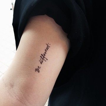 **Don't be most peopleBe Different**不要害怕與眾不同,相信自己,走不一樣的路。可選購 1 組 4 款的鼓勵文字刺青貼紙 ( 如想選購指定文字,請到 LAZY DUO 設計館 ):- **Time waits for no one.**( 時間不等人,亦不會為任何事而停下)- **Keep moving forward **( 不要停步,繼續向前 )- **Don't be most people, be different. ** ( 不要害怕與眾不同,相信自己,走不一樣的路 )- **Don't downscale your goals Upscale your actions.**( 不要降低你的目標,提升行動力吧 )https://cdn.shopify.com/s/files/1/1079/7100/products/LDP_COMP_PH_01_98df7256-acc1-445b-bb15-16327e203fea_grande.jpg?v=1528582289✢ **產 品 說 明** ✢名 稱 : LAZY DUO 手繪防敏防水紋身貼紙|Be Different 與眾不同尺 寸 : H 3.0 cm x W 7.0 cm顏 色 : 黑色數 量 : 1/2/4 張成 分 : 化妝品專用著色劑,種子油,甘氨酸大豆油,皮膚專用水轉移膠https://youtu.be/Cercug_5c_Mhttps://youtu.be/YTiO0DmjaFIhttps://cdn.shopify.com/s/files/1/1079/7100/files/How_to_use_CN.png?v=1498497662✢ **寄 送 需 知** ✢所有郵件將會以香港郵政(普通平郵)或(普通空郵)寄出,郵件會放信箱的,可以放心不用等門哦~※請勿提供順豐站地址喔~ 會收不到的!如需掛號或使用其他郵遞方式,請務必來信聯絡。✢ **各 地 運 送 時 間** ✢**出 貨 時 間:**匯款確認後的 1- 3 天內會將商品寄出給您。** 目的地:香 港**約 2 - 4 個工作天內送達 (不含週六日及國定假日)**目的地:台 灣**約 9 - 11 個工作天內送達 (不含週六日及國定假日)**目的地:澳 門**約 7 - 9 個工作天內送達 (不含週六日及國定假日)**目的地:其 他 地 區**不同目的地送達時間會有差異,大致上寄出後的 12 - 16 個工作天內送達 (不含週六日及國定假日)。**・關 於 LAZY DUO 短 紋 身 貼 紙・**https://youtu.be/N2GgDA6BQckhttps://www.pinkoi.com/user/lazyduo**大量郵購** 郵費將根據數量與地域有所改變,下訂單前請先跟我們溝通。.產地/製造方式Designs in Hong Kong | Made in Taiwan