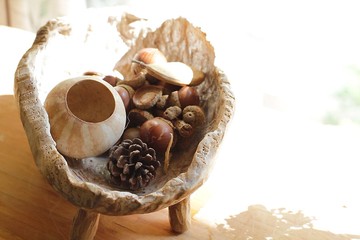 純手捏仿化石質地陶瓷高腳置物容器/苔球花器