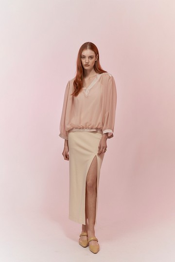 涼感.舒涼雪紡小V臉百褶寬鬆長版上衣