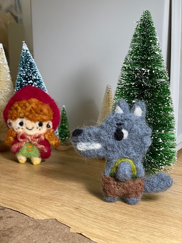 穿著吊帶褲的大野狼羊毛氈別針