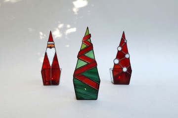 耶誕饗宴/玻璃燭台/擺飾/鑲嵌玻璃/彩帶樹