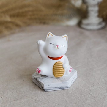 【白晶億両】日本清水燒招財貓 | 花結晶 白 億万両 左 特小