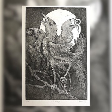 - 由藝術家親自製版到手工印刷,於巴黎atelier contrepoint凹版工作室完成。- 製作手法:凹版腐蝕於鋅板後手工印刷。- 限量版數黑白共11張,墨綠版本1張,紅月亮版本3張。- 作品本身大小為 20x30 cm。- 作品是印在版畫紙(底紙) 28.5x38cm。- 紙張本身是手裁,不是用機械或刀具切割,所以會保留鋸齒狀,故尺寸會有些微誤差。- 凹版從製版到印刷均為手工製作,每張都有些微不同跟手感。- 照片最後一張為鋅版實體照片,不提供販售。